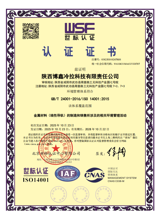 金属材料(线性导轨)的制造和销售所涉及的相关环境管理活动世标..证书